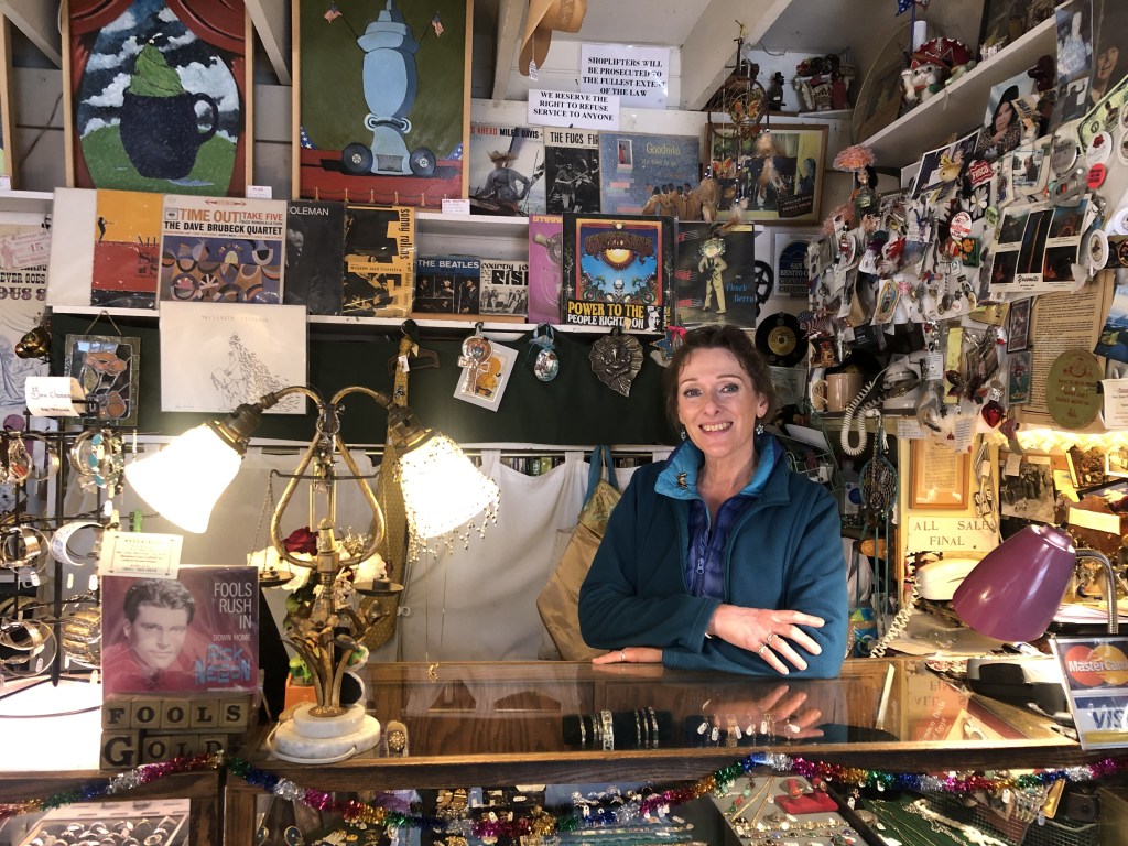 On my most recent visit in January 2025, I wandered into Fool’s Gold, a tucked-away antique shop across from Rozas House, which I hear hosts ghost tours around Halloween. Inside, I met Halina Kleinsmith, the shop’s owner for over 25 years. She’s filled a corner of her store with a tribute to “Vertigo,” including a vintage movie poster and a mannequin dressed like actress Kim Novak’s iconic film character.
